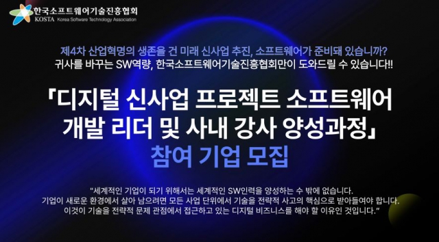 디지털 신사업 프로젝트 소프트웨어 개발 리더 및 사내 강사 양성과정 참여 기업 모집