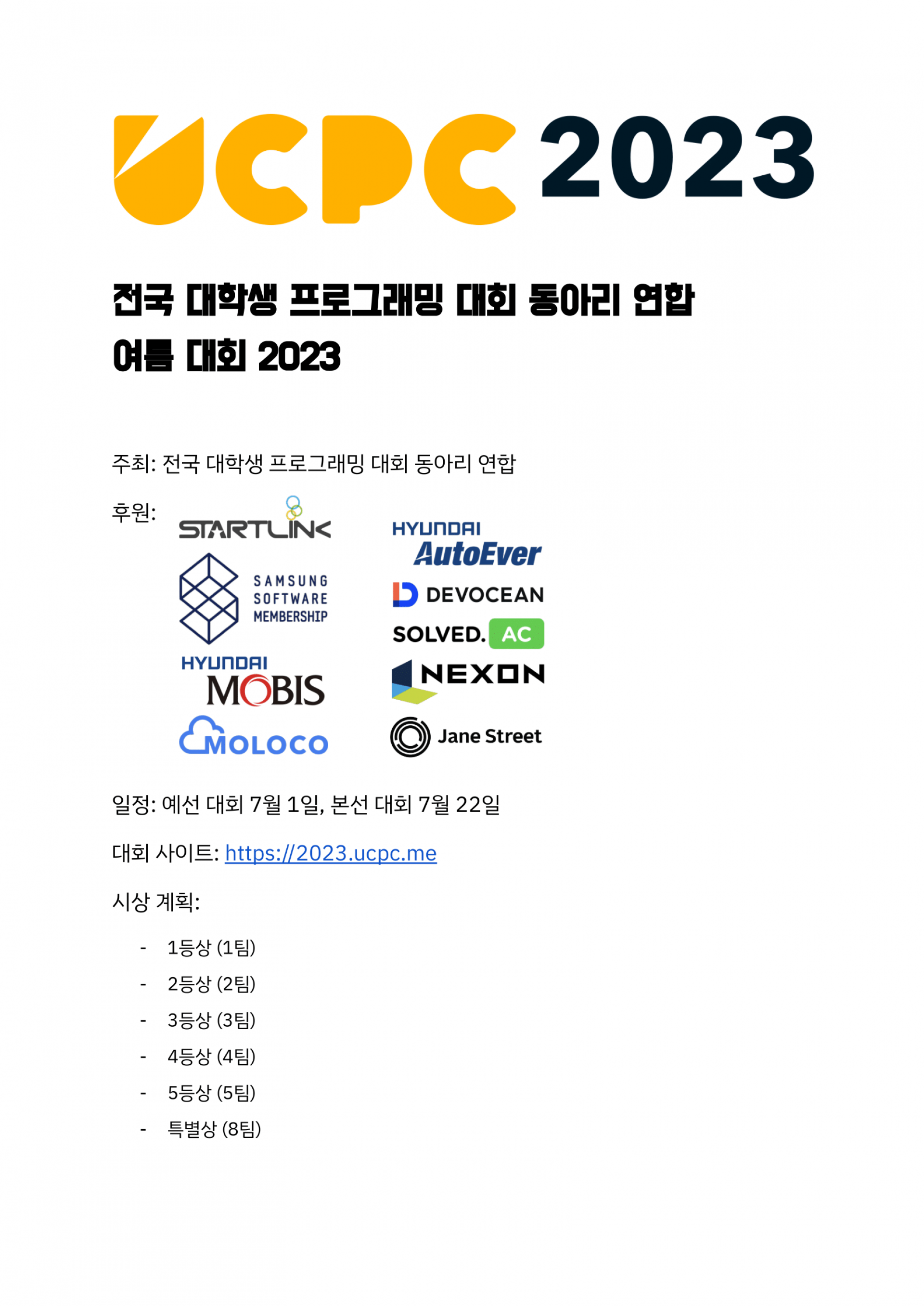 UCPC 2023 (전국 대학생 프로그래밍 대회 동아리 연합 여름 대회 2023)