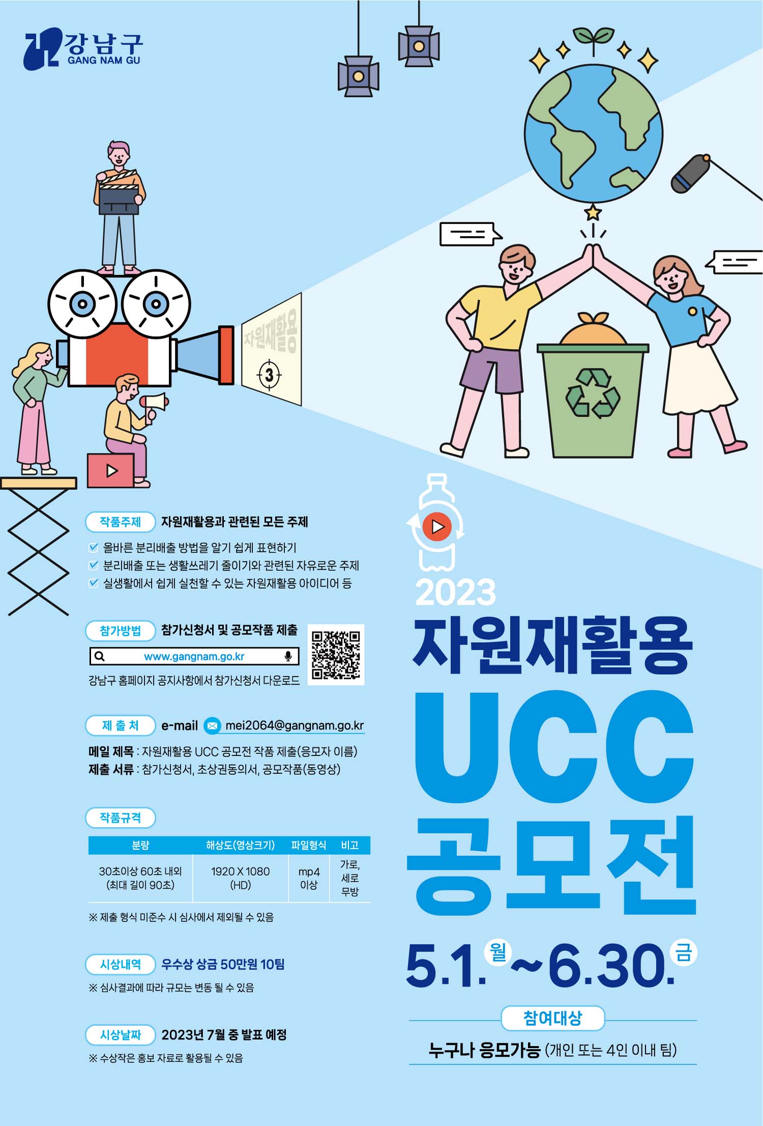 - 2023 강남구 자원재활용 UCC 공모전을 개최합니다.