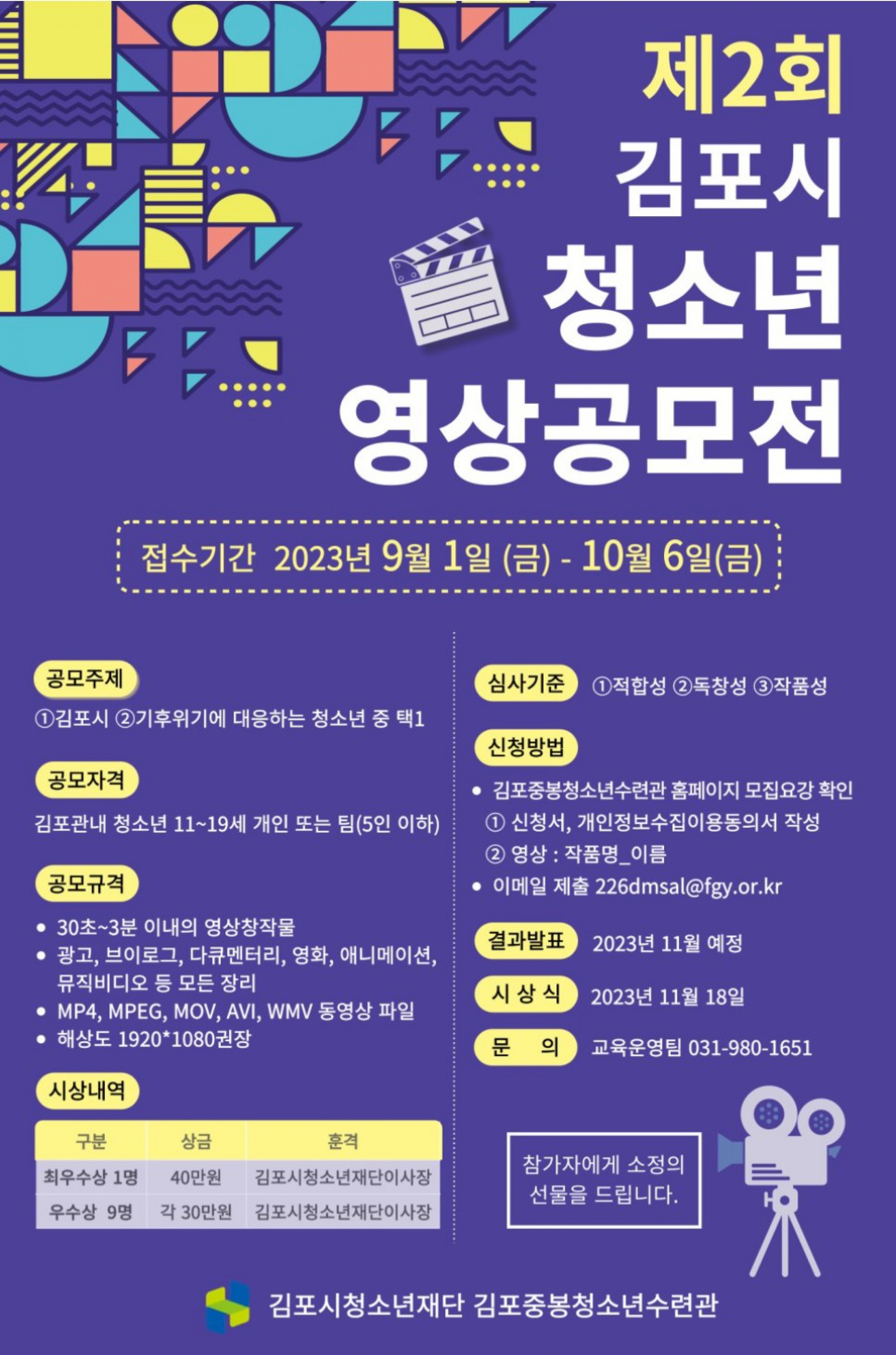 - 제2회 김포시 청소년 영상공모전을 개최합니다.