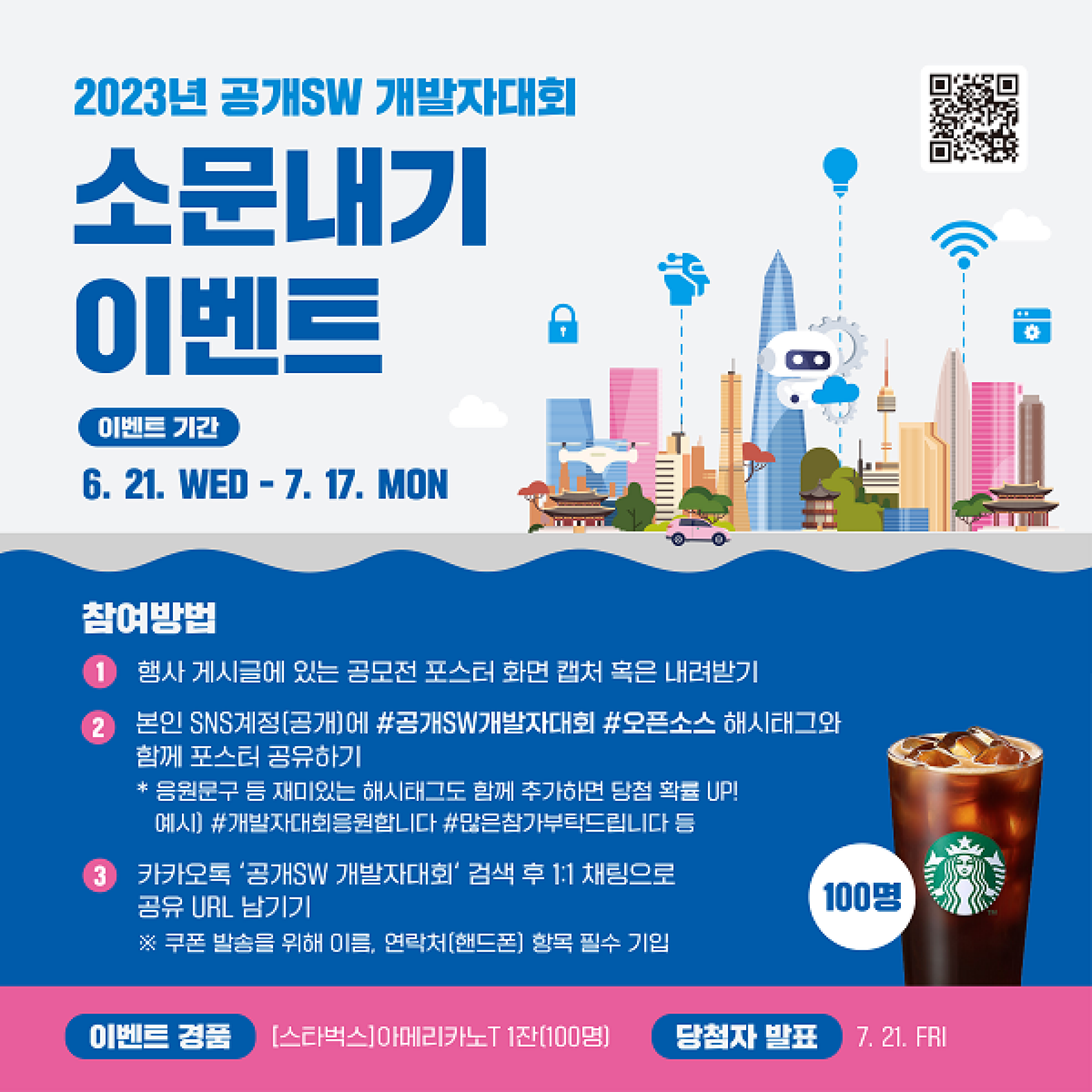 - 제17회 공개SW 개발자대회 소문내기 이벤트를 개최합니다.