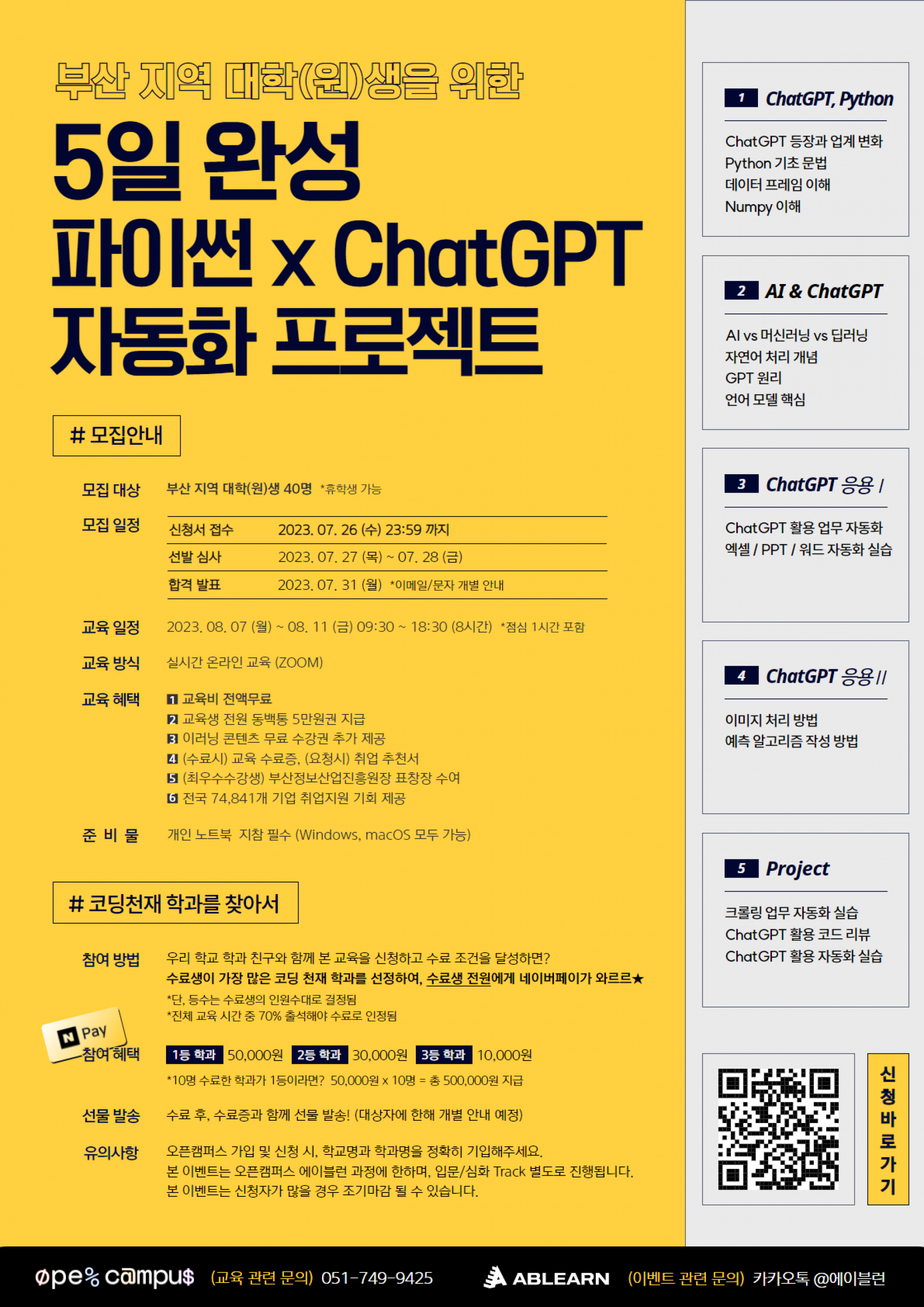 부산 지역 5일 완성 파이썬 x chatGPT 자동화 프로젝트 교육생 모집
