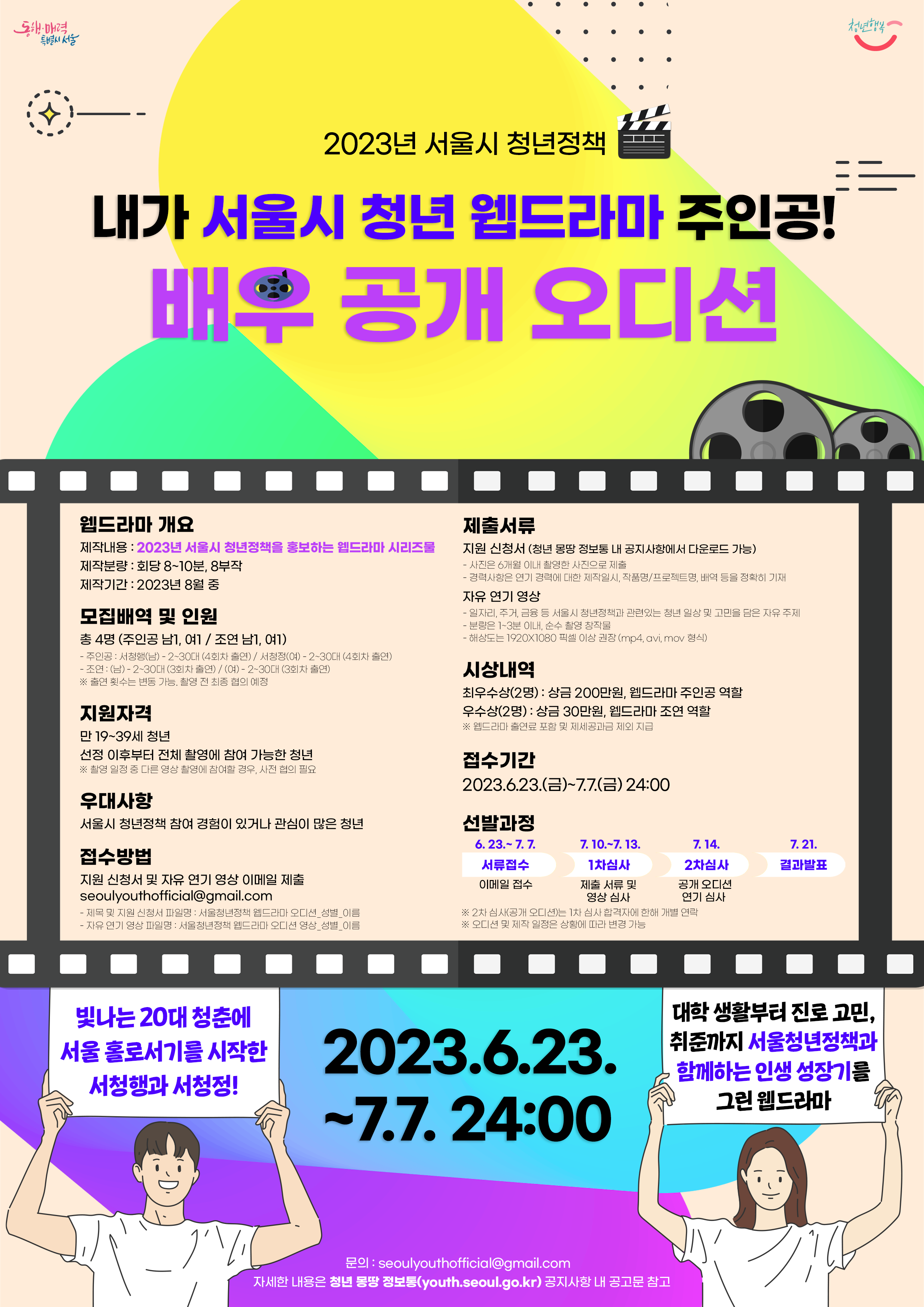 - 내가 서울시 청년 웹드라마 주인공! 배우를 공개 모집하는 오디션을
