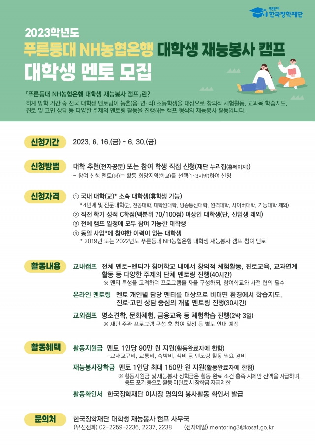 - 한국장학재단이 2023학년도 푸른등대 NH농협은행 대학생 재능봉사