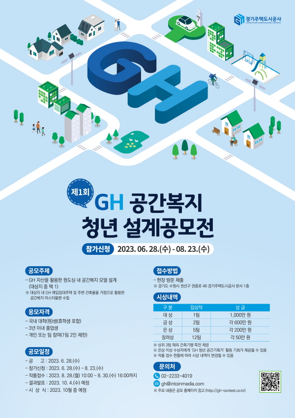 - 경기주택공사에서 제1회 GH 공간복지 청년 설계공모전을 진행하오니