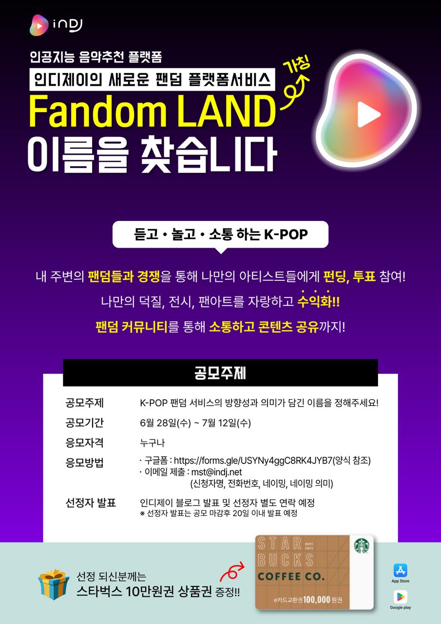 - 2023 인디제이 새로운 팬덤 플랫폼 네이밍 공모전을 개최하오니
