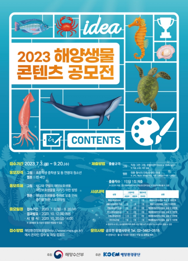 - ☏ 2023 해양생물콘텐츠공모전 운영사무국(02-3462-2515)