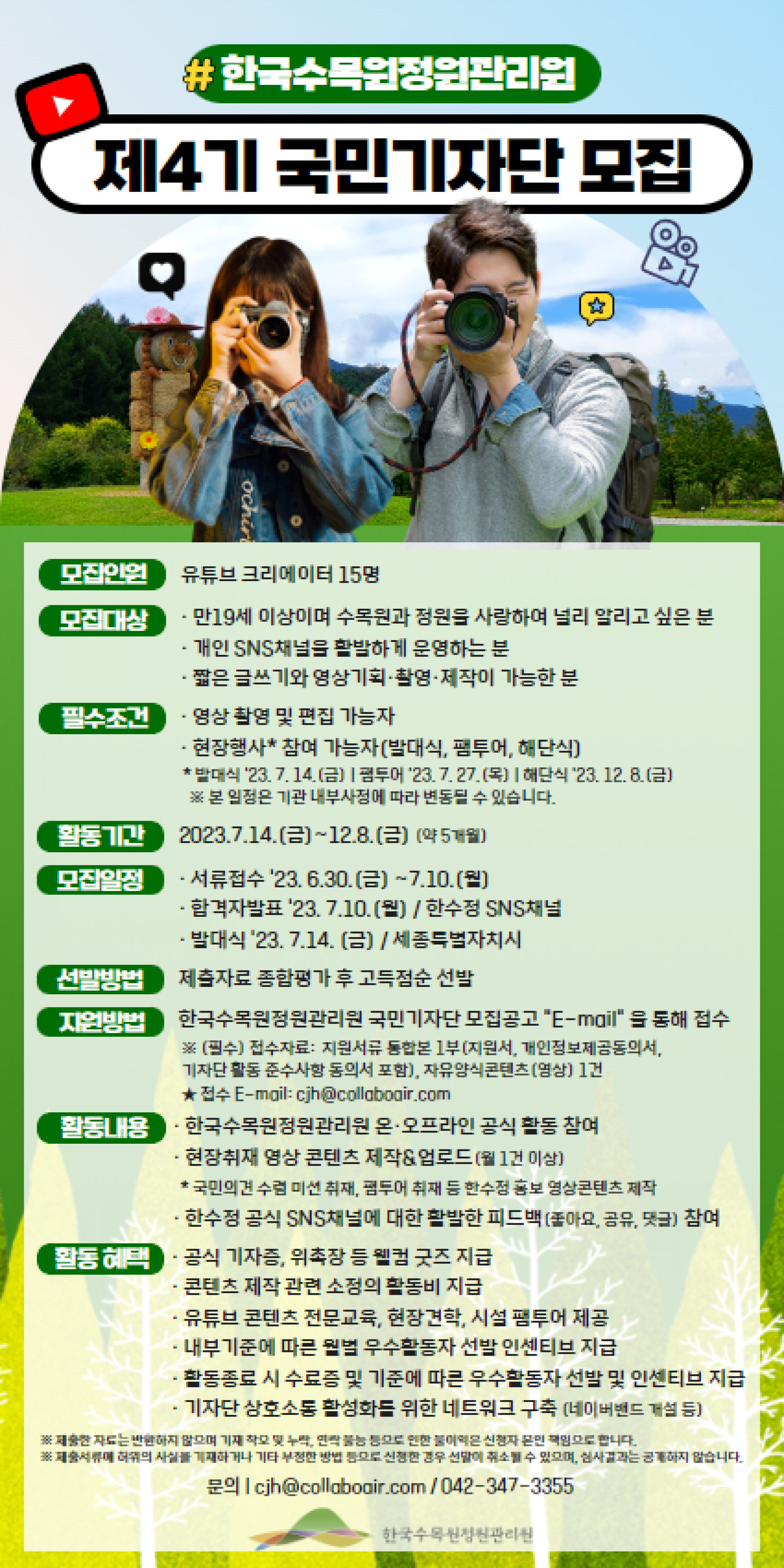 - 한국수목원정원관리원 국민기자단 모집공고 "E-mail" 을 통해