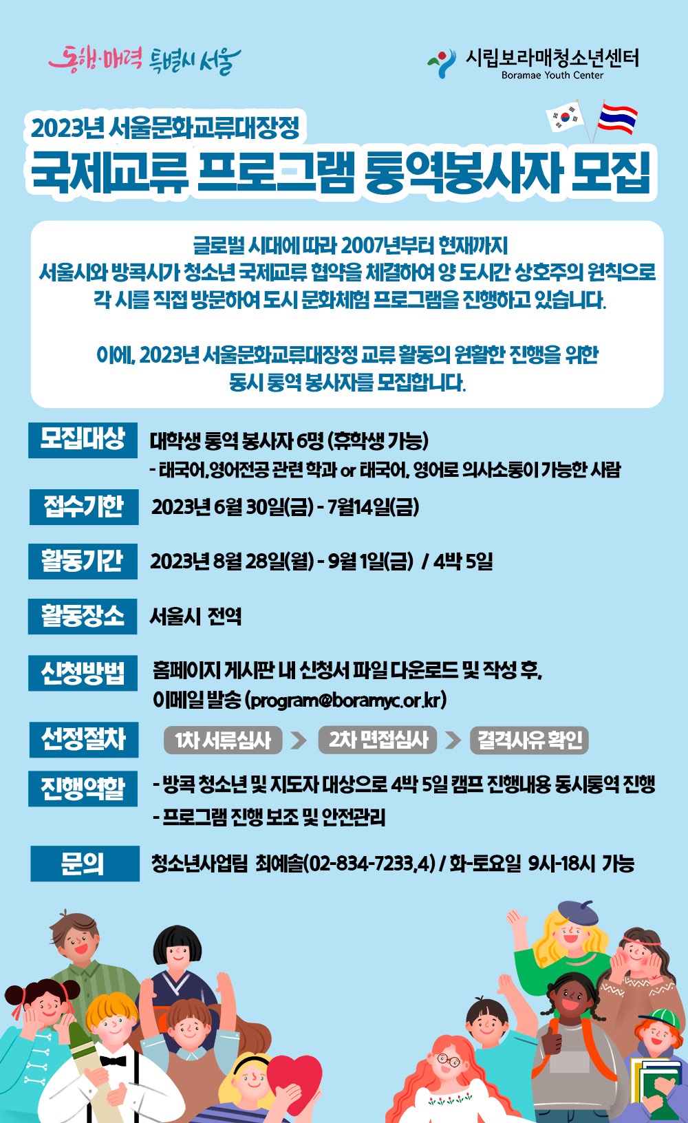 - 2023년 서울-방콕 문화교류대장정 통역 봉사자를 모집하오니