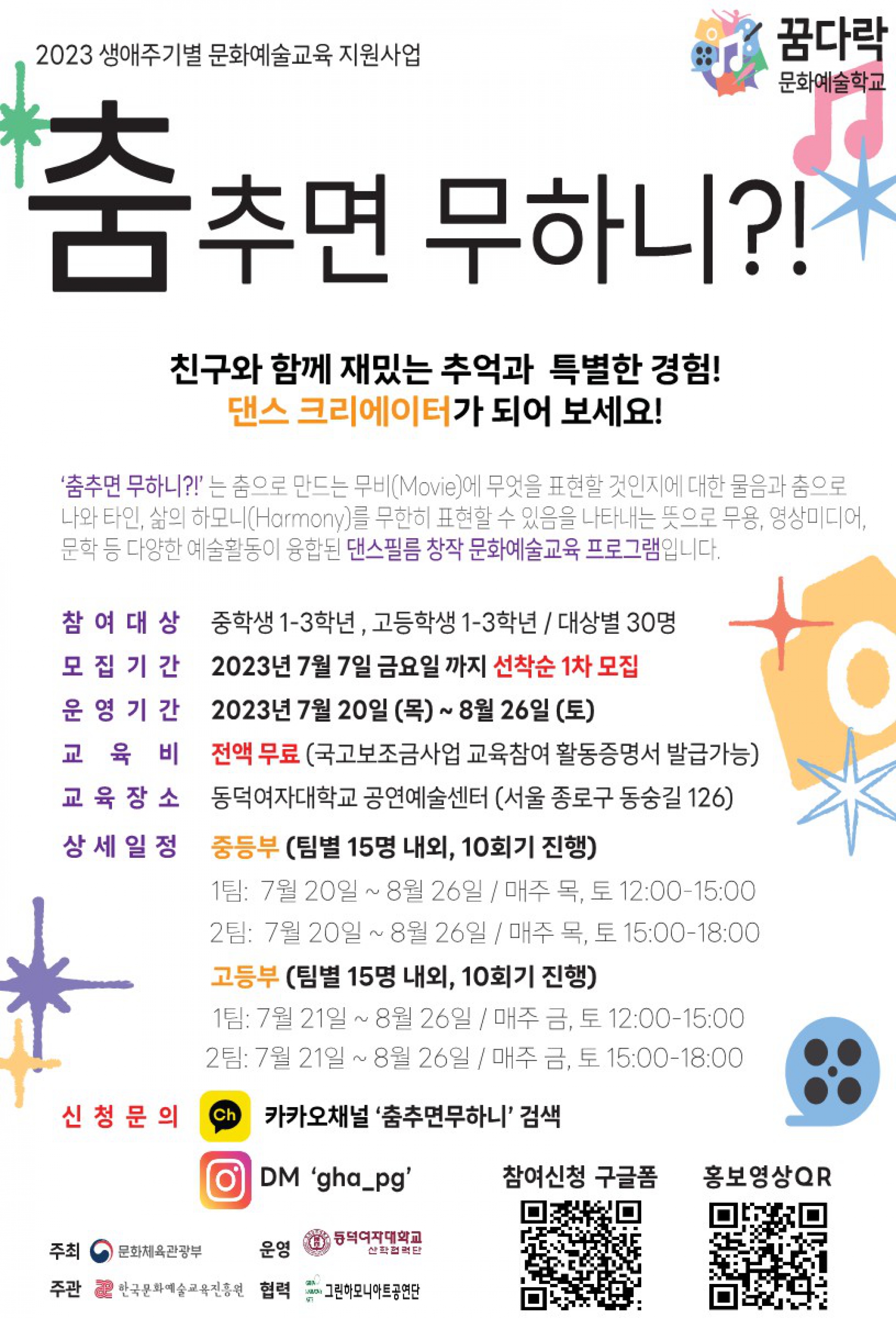 꿈다락 문화예술학교 "춤추면무하니?!" 참여자 모집