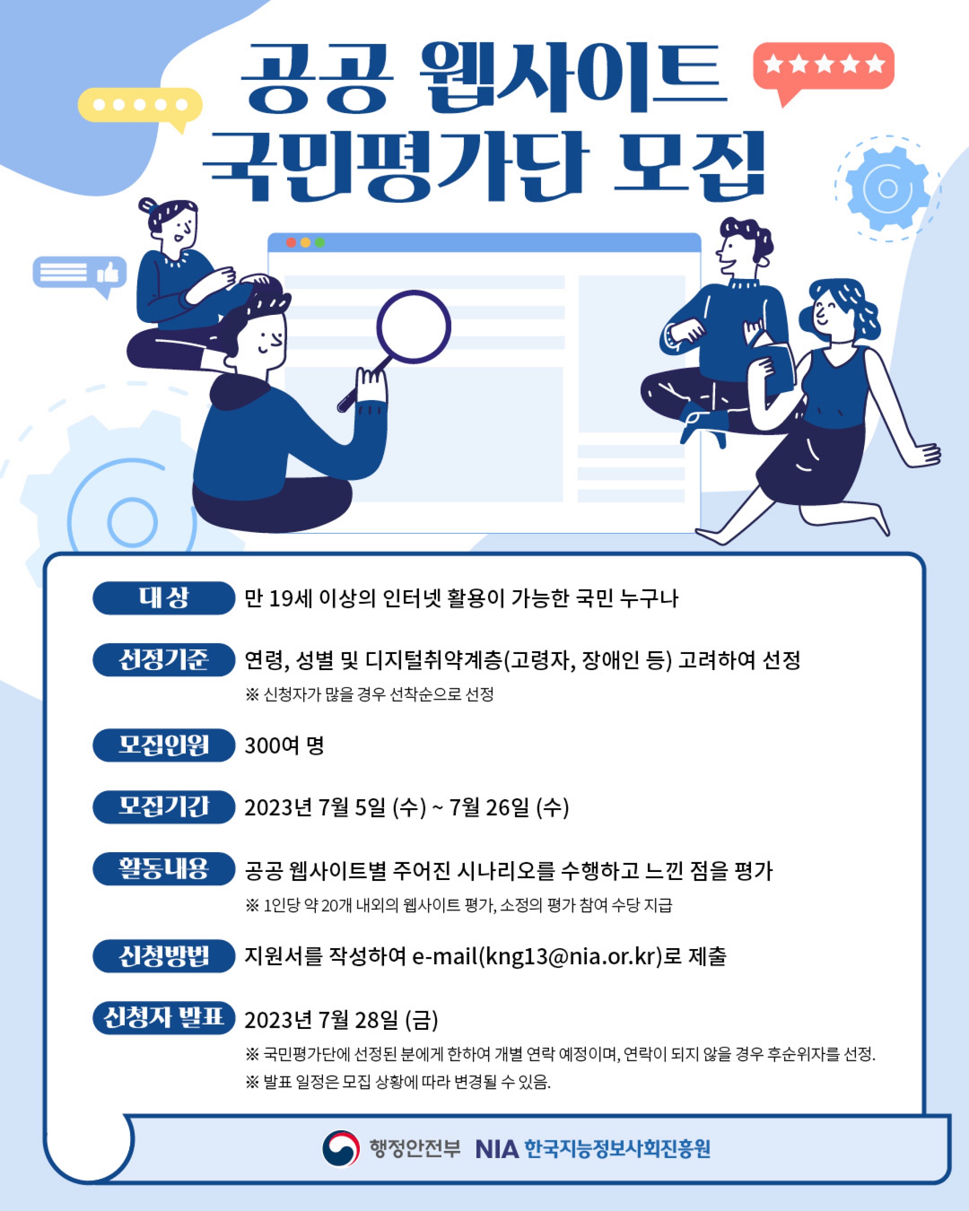 「공공 웹사이트 국민평가단」을 선발하여 운영하고자 합니다.