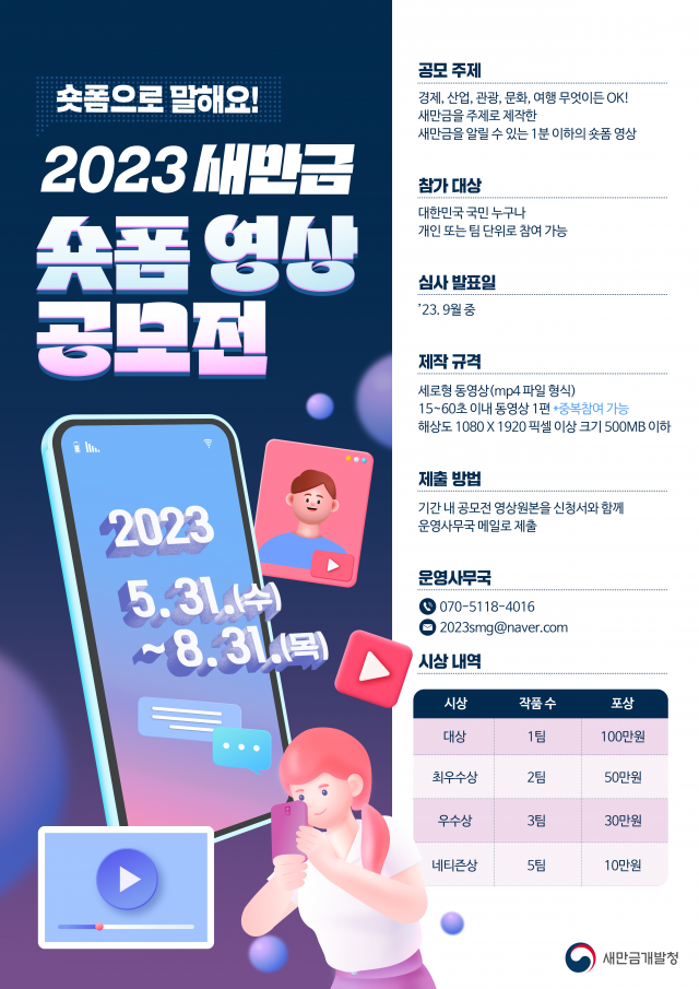 - 2023 새만금 숏폼 영상 공모전을 개최합니다.