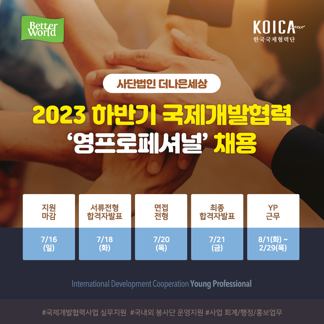 2023 하반기 국제개발협력 영프로페셔널 (YP) 채용- 더나은세상