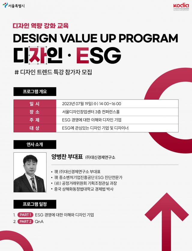 디자인 밸류업 프로그램 'ESG·디자인 트렌드 특강' 참가자 모집