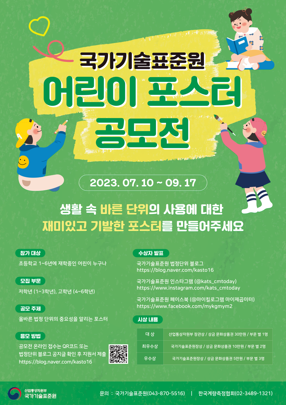 - 국가기술표준원이 2023 바른단위 어린이 포스터 공모전을 개최하오니