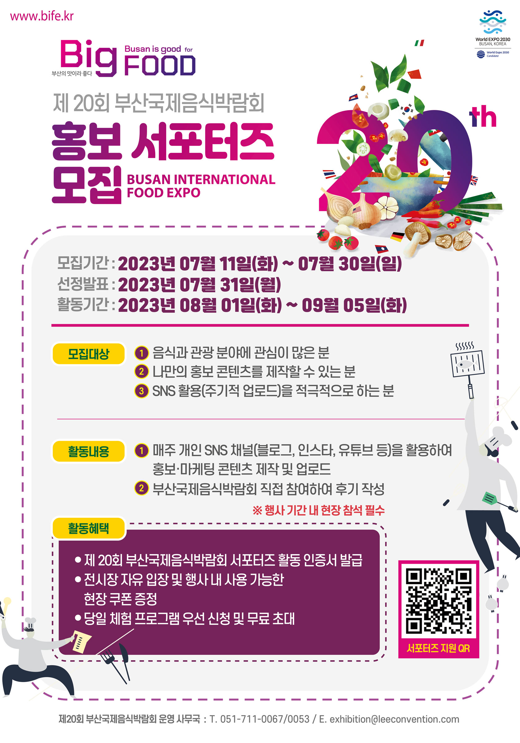 - 2023 부산국제음식박람회의 서포터즈를 모집하오니