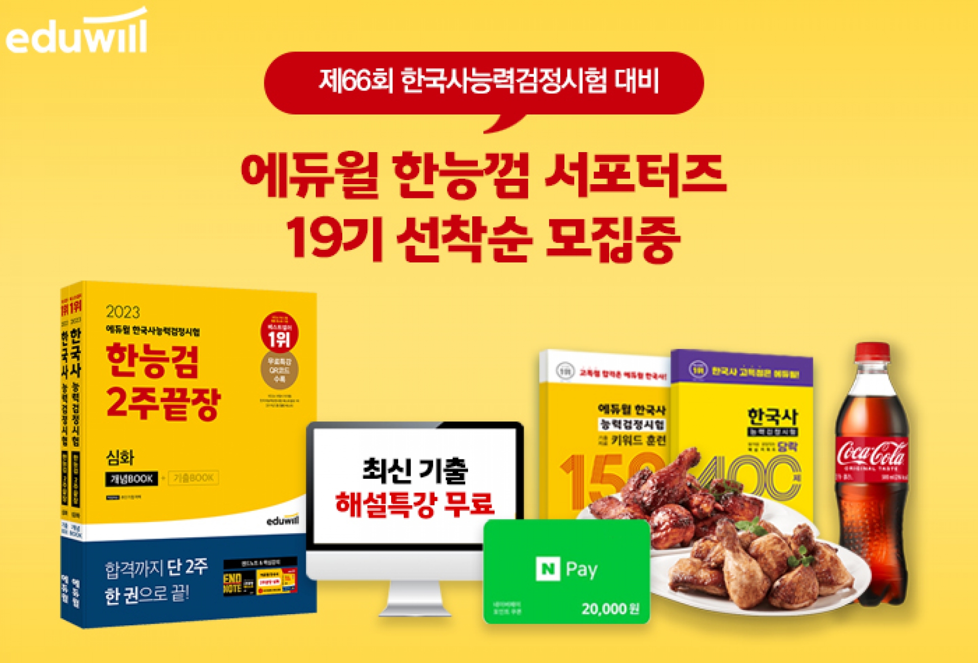 제66회 한국사능력검정시험 대비, 에듀윌 한능껌 서포터즈 19기 모집