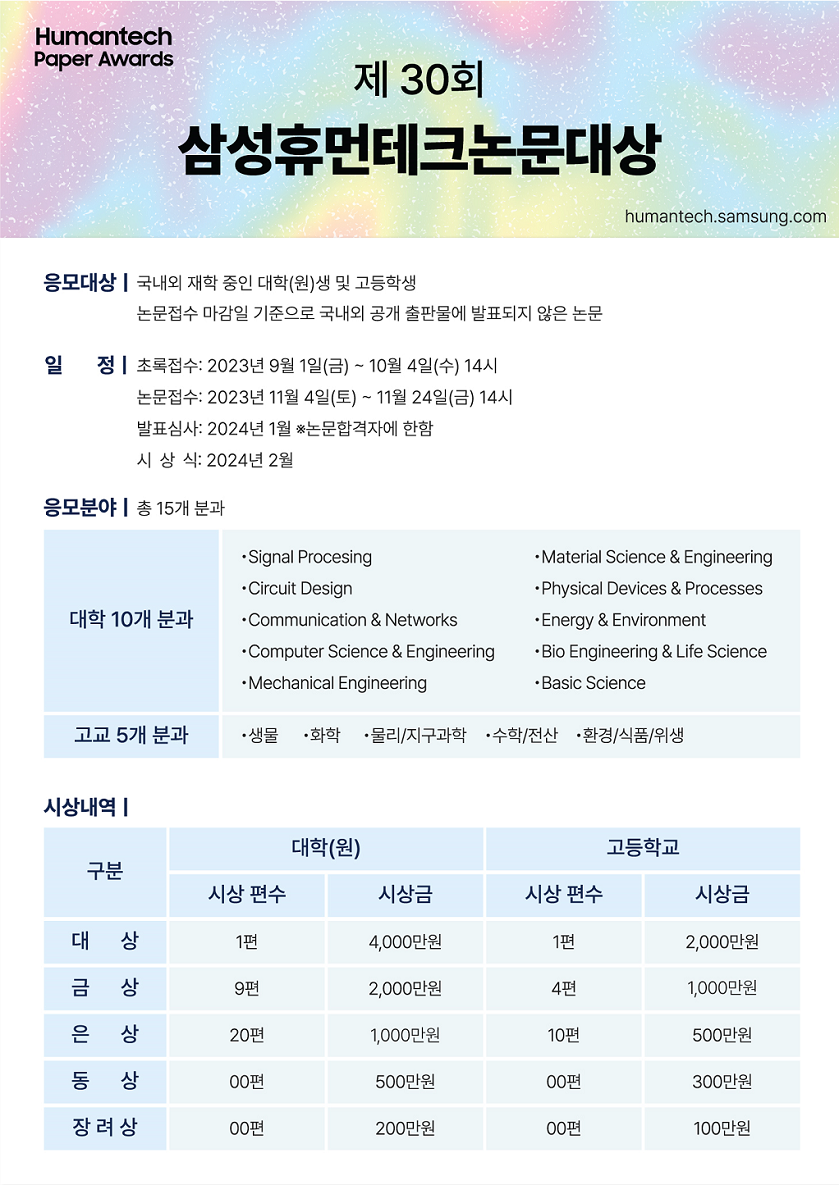 - 제30회 삼성휴먼테크논문대상을 시행하오니