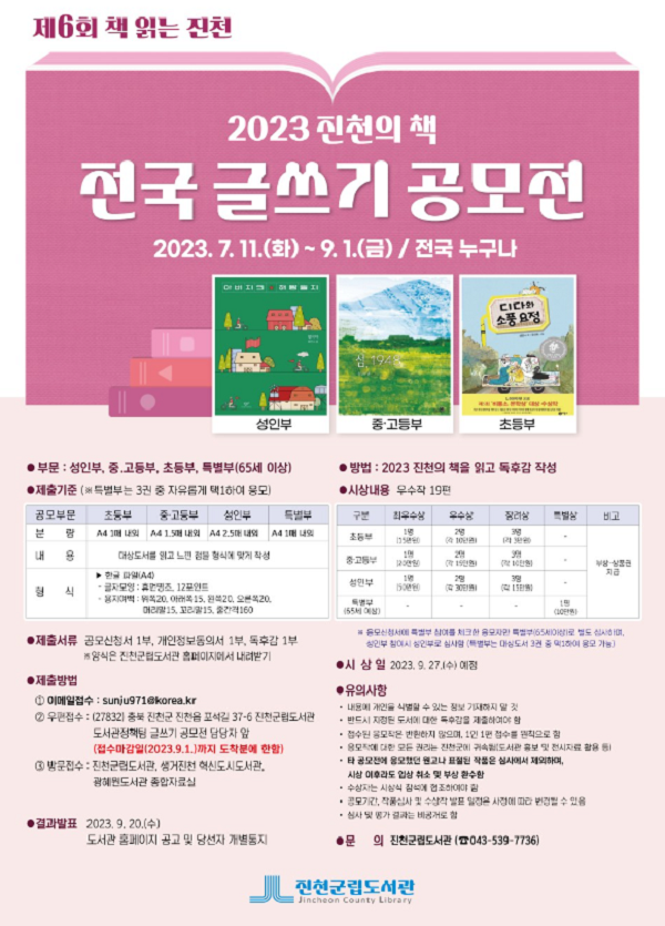 - 2023 진천의 책 전국 글쓰기 공모전을 개최하오니