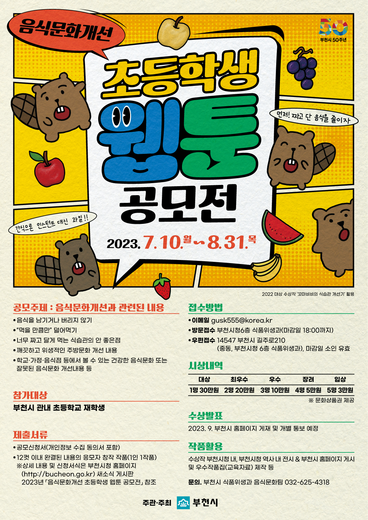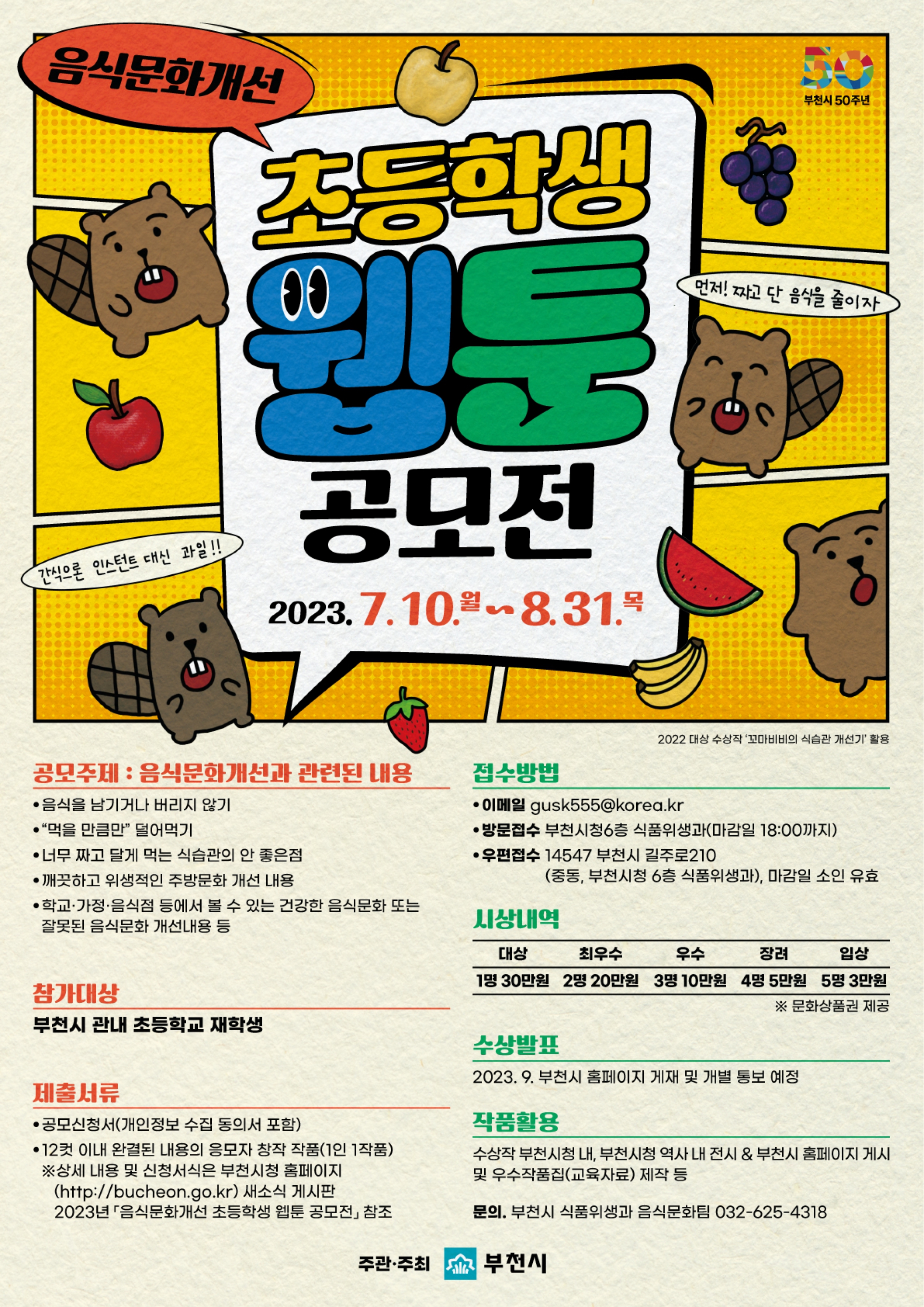 - 부천시에서 음식문화 개선 초등학생 웹툰 공모전을 개최하오니