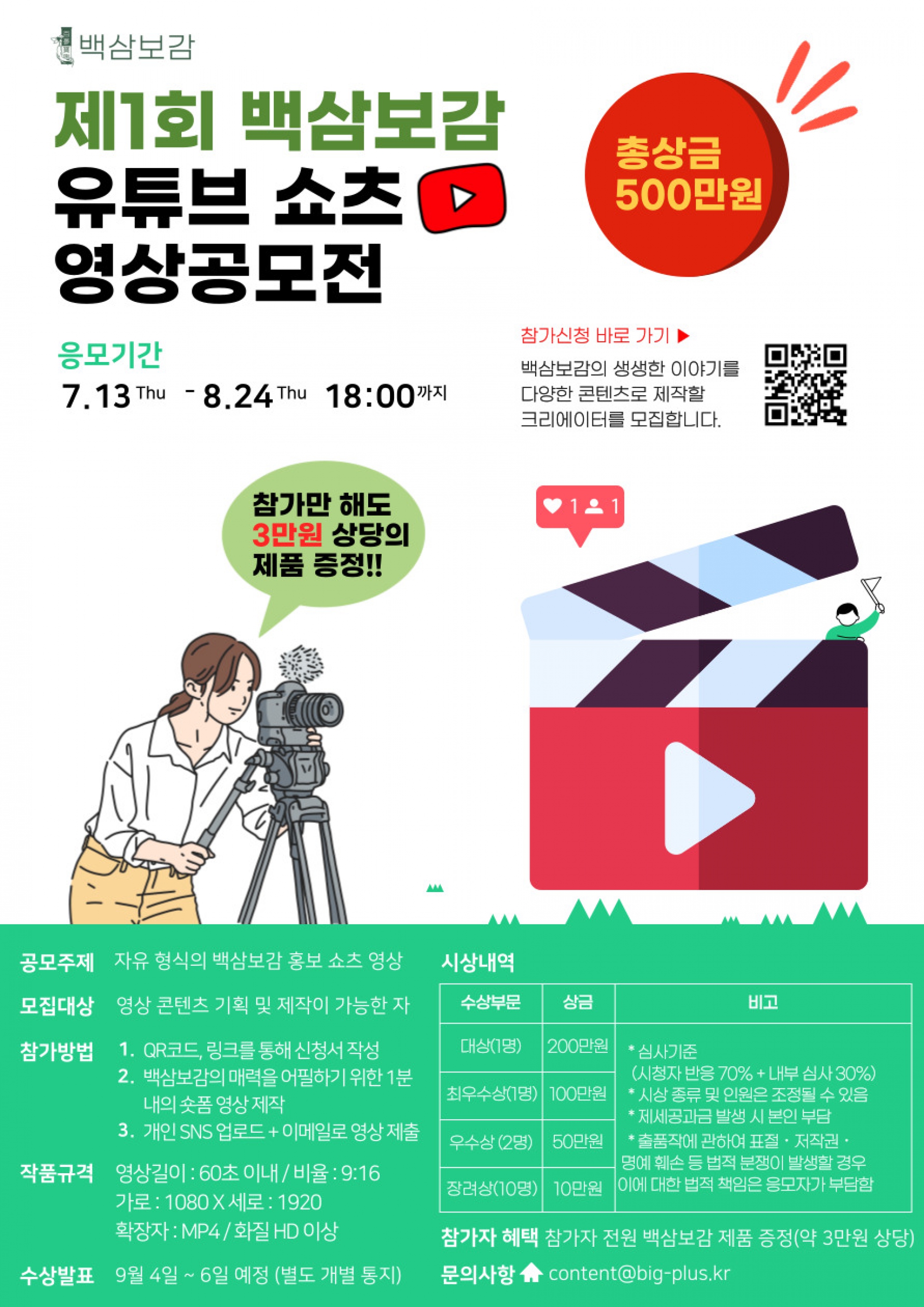 제1회 백삼보감 유튜브 쇼츠 영상공모전