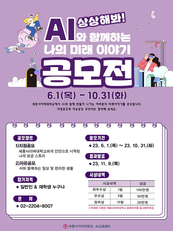 - 세종사이버대학교에서 AI와 함께 만들어 나가는 여러분의 미래이야기를 공모합니다.