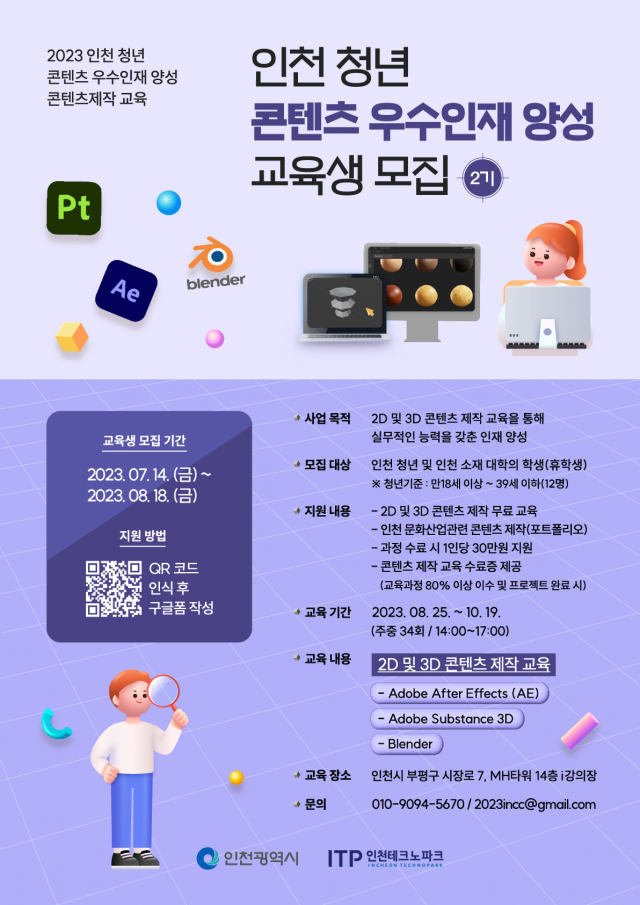 2023 인천 청년 콘텐츠 우수인재 양성 콘텐츠제작 교육 2기 모집