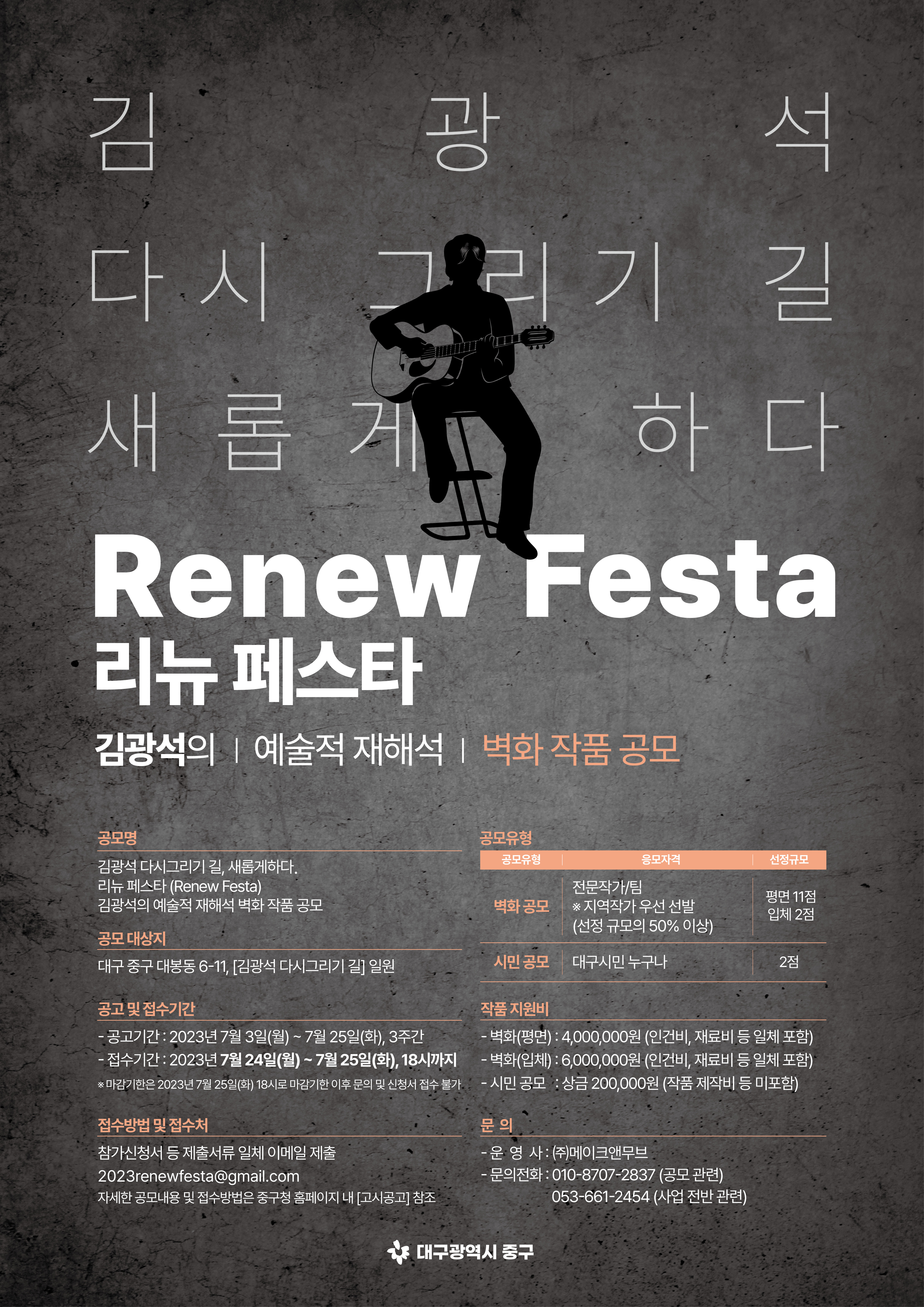 리뉴 페스타(Renew Festa) '김광석의 예술적 재해석 벽화 작품' 공모