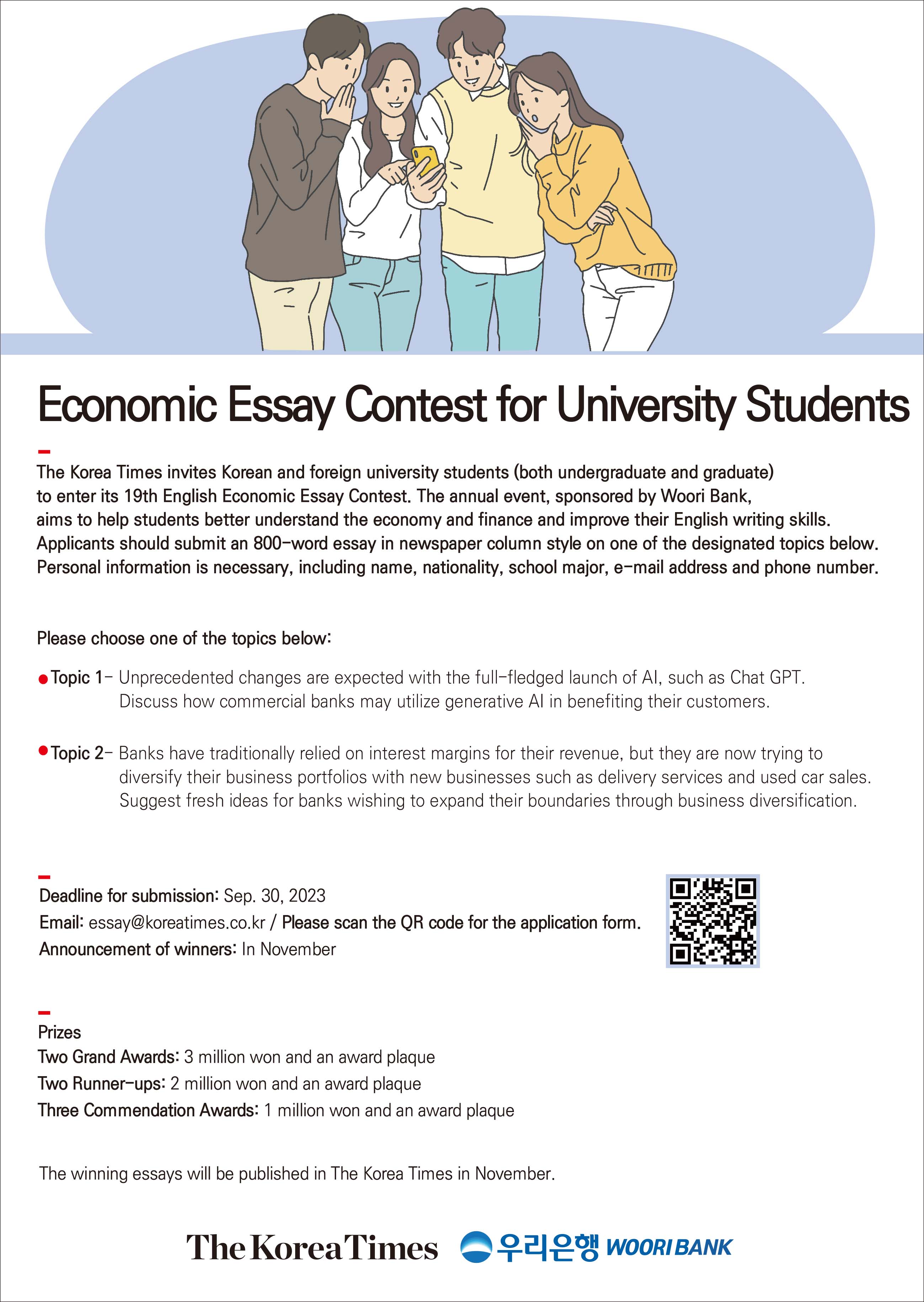 - "2023 제19회 코리아타임스 경제 에세이 대회”를 개최하오니
