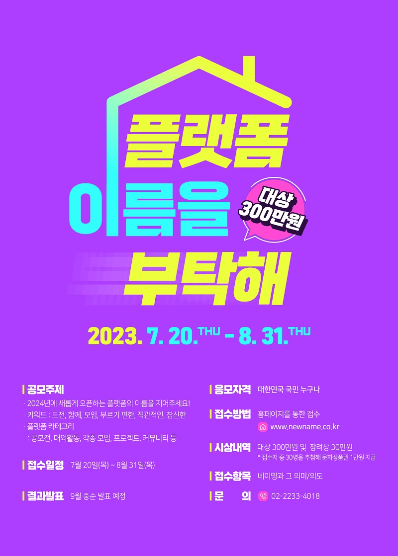 - '플랫폼 이름을 부탁해' 네이밍 공모전을 개최하오니