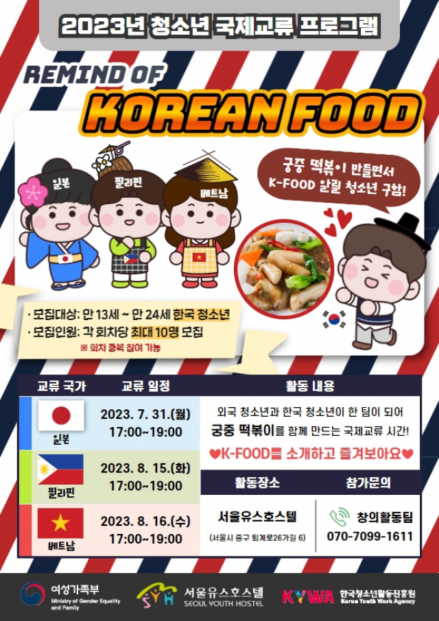 - 외국과 한국의 청소년이 한 팀이 되어 궁중 떡볶이를 만드는 K-FOOD 국제 교류!