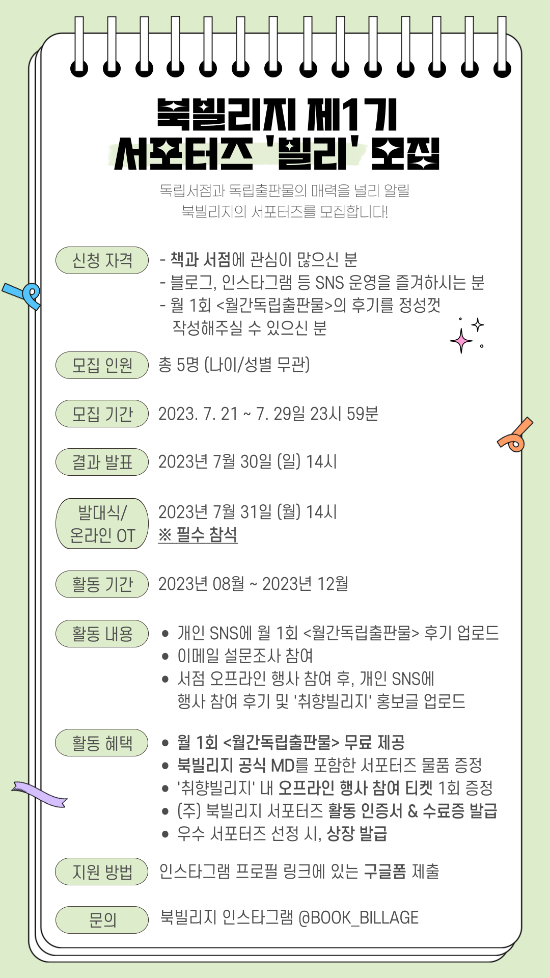 (주) 북빌리지 제 1기 서포터즈 '빌리' 모집