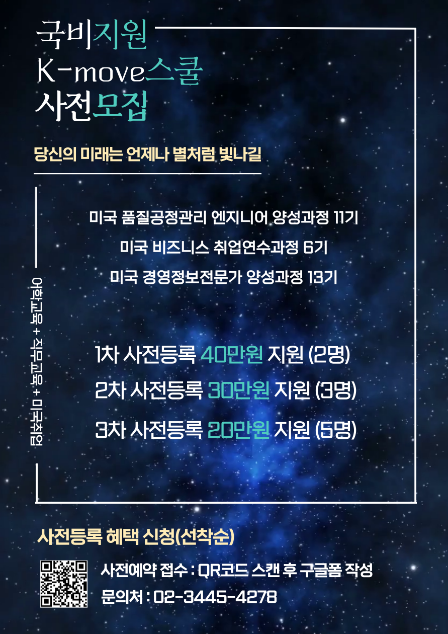 국비지원 K-move스쿨 미국취업 연수 프로그램 참여자 모집
