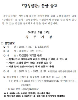 | 시상내역 | 당선작 시상금 30만원 및 감성글판 게재 |