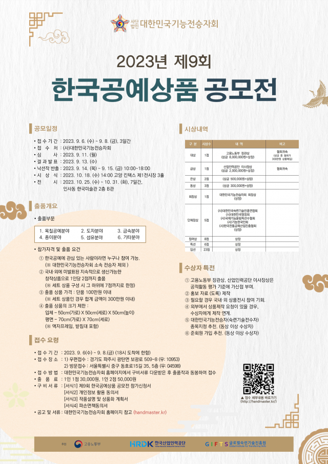 - 2023년 제9회 한국공예상품공모전을 개최하오니
