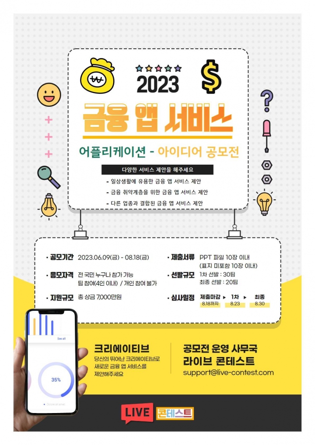 - 2023 금융 앱 서비스 어플리케이션 - 아이디어 공모전을 개최하오니
