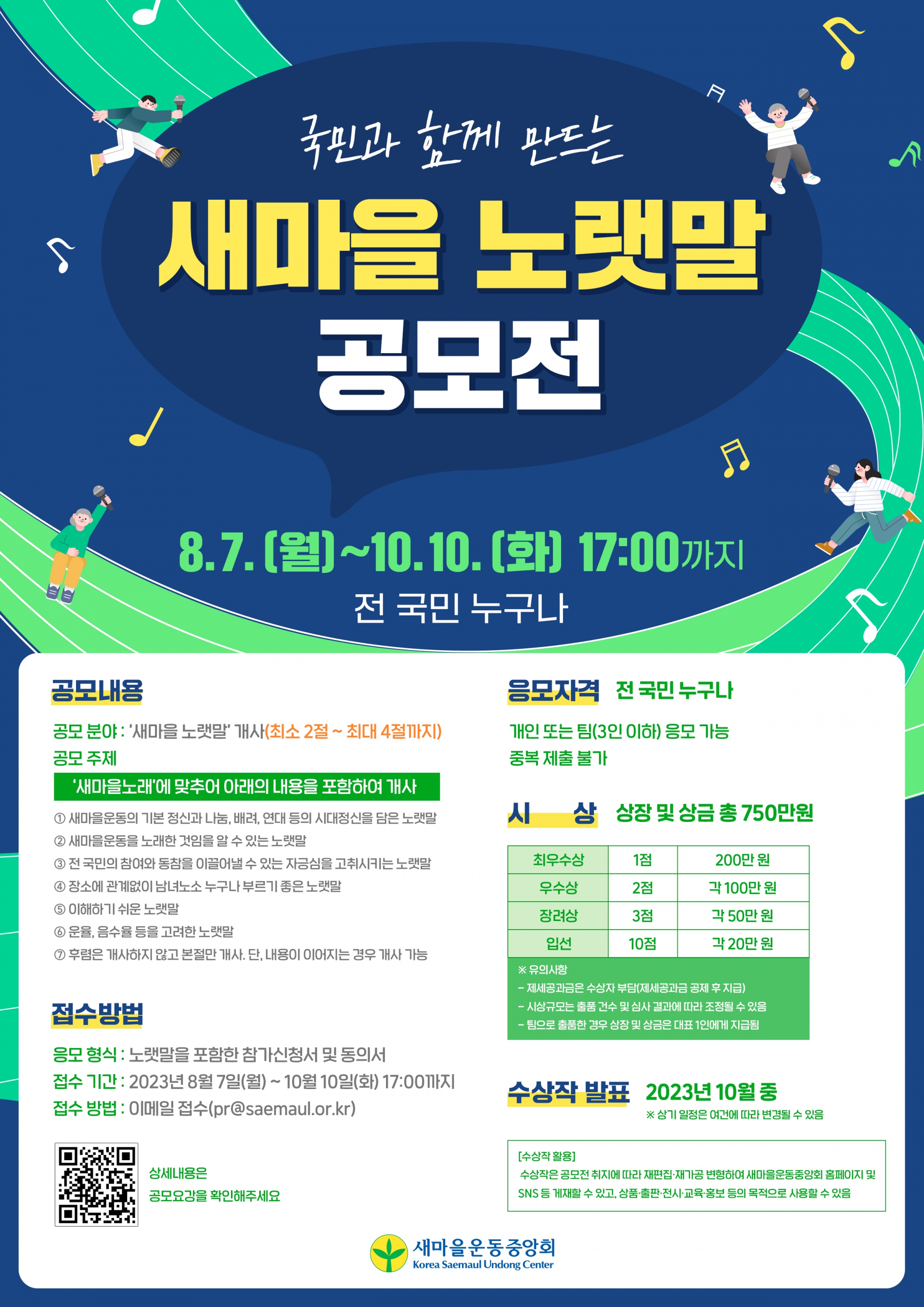- 새마을운동중앙회 공모전 담당 ☏ 031-620-2375