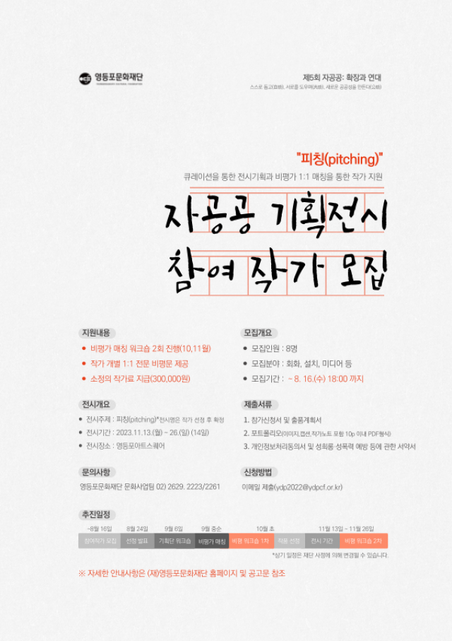 - 자세한 내용은 첨부파일과 영등포문화재단 홈페이지 공지사항 및