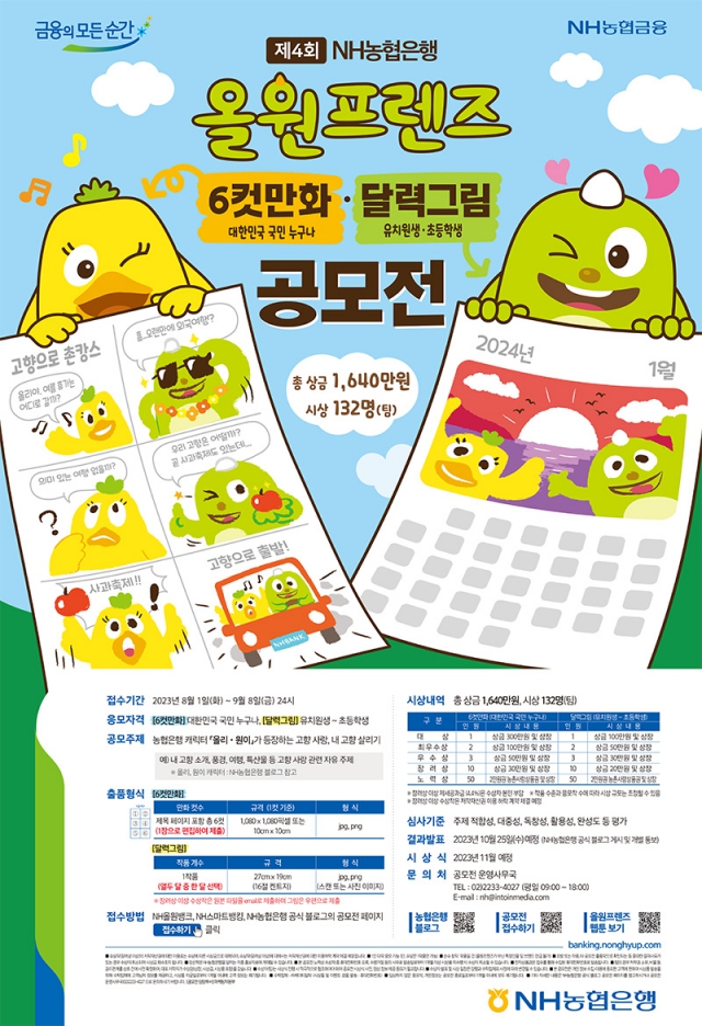 - 제4회 NH농협은행 올원프렌즈 6컷만화·달력그림 공모전을 개최하오니