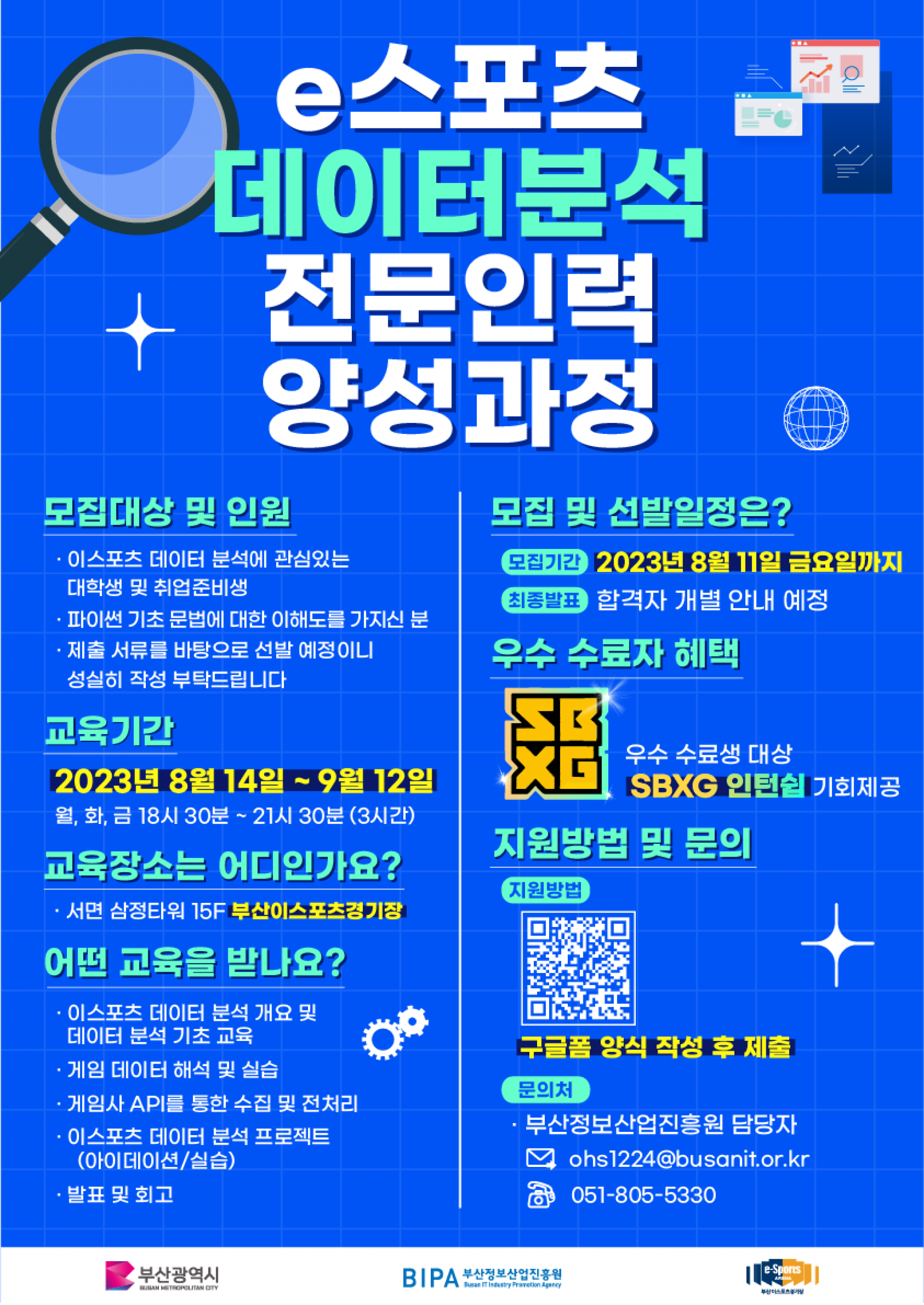 - 이스포츠 데이터 분석 전문인력 양성과정의 수강생을 모집하오니