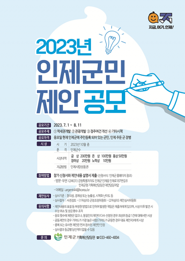 - 응모일 현재 인제군에 주민등록 되어 있는 군민,