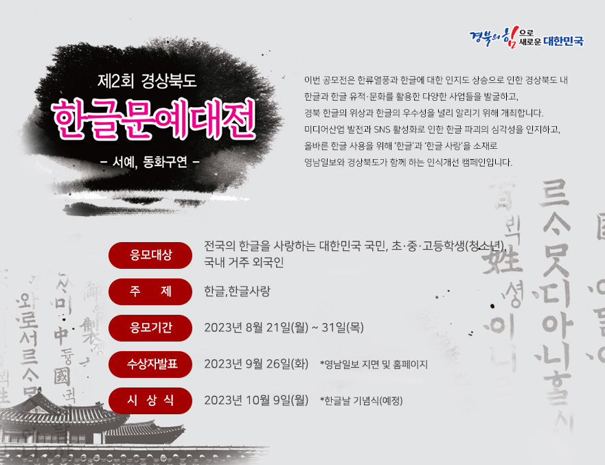 올바른 한글 사용을 위해 ‘한글’과 ‘한글 사랑’을 소재로 영남일보와 경상북도가 함께 하는