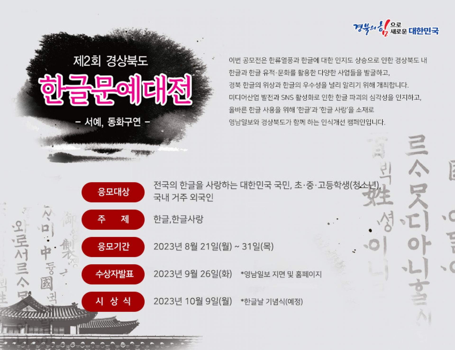 올바른 한글 사용을 위해 ‘한글’과 ‘한글 사랑’을 소재로 영남일보와 경상북도가 함께 하는