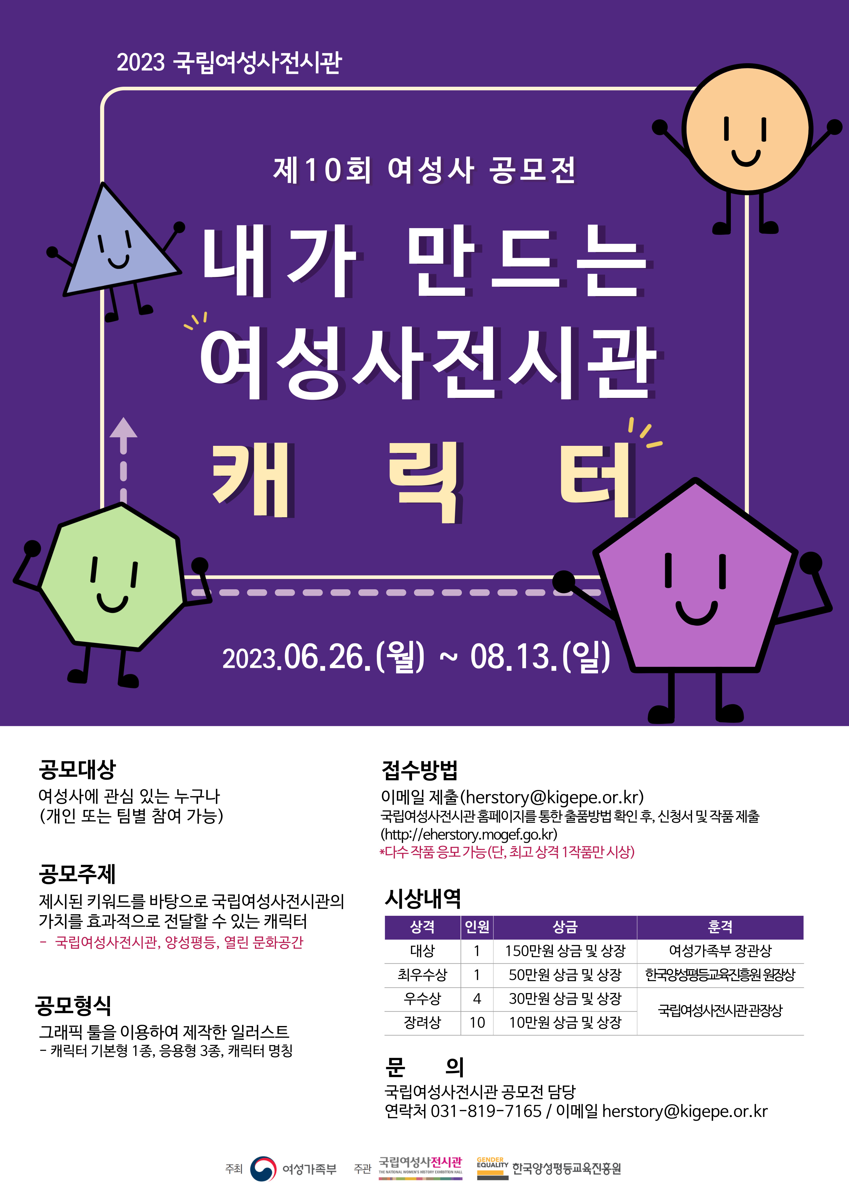 - 최종발표: 2023. 9. 4.(월), 16:00(예정) / 국립여성사전시관 홈페이지