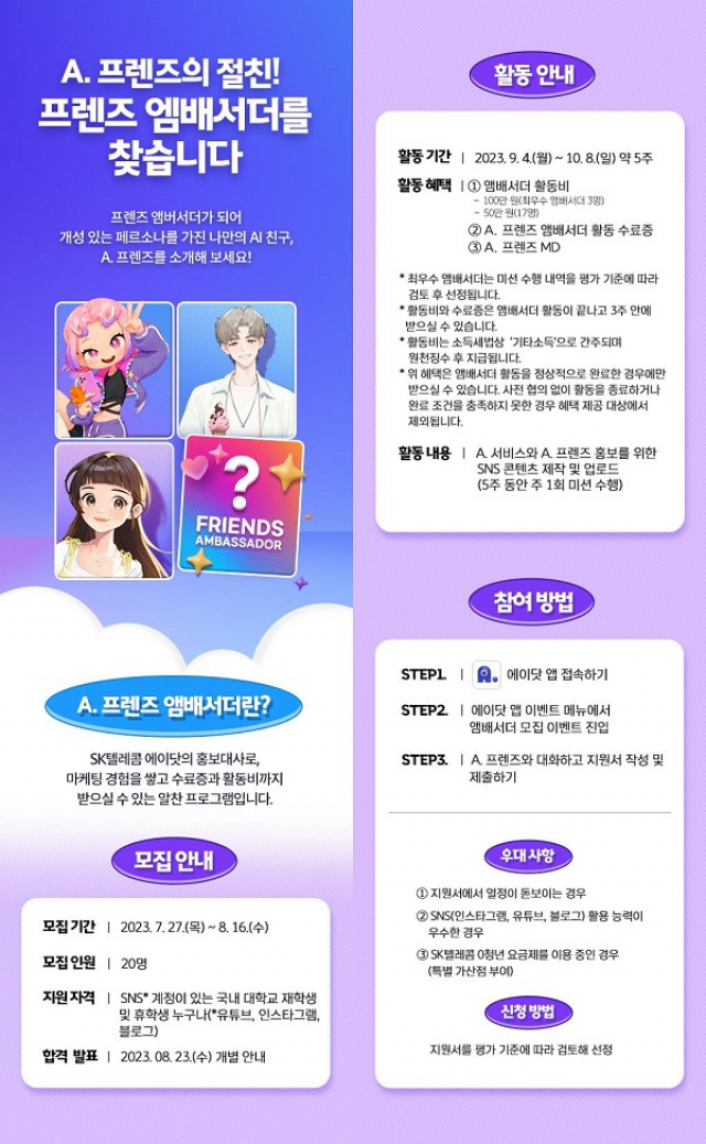 - SK텔레콤 프렌즈 엠배서더를 모집하오니