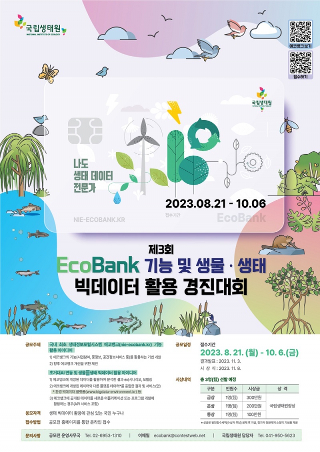 - 국립생태원에서 제3회 EcoBank 기능 및 생물, 생태 빅데이터 활용 경진대회를