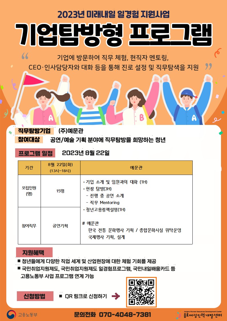 - 종로여성인력개발센터 고용서비스사업부 ☏ 070-4048-7381