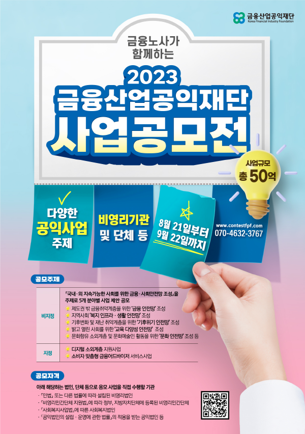 - 공모기간 : 2023.8.21.(월) ~ 9.22(금) 18:00 / 총 5주