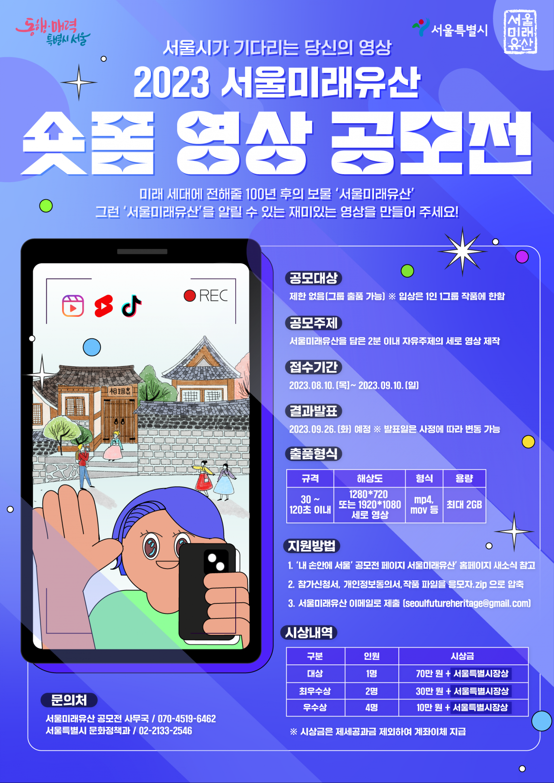 - 2023년 서울미래유산 숏폼 영상 공모전을 개최하오니