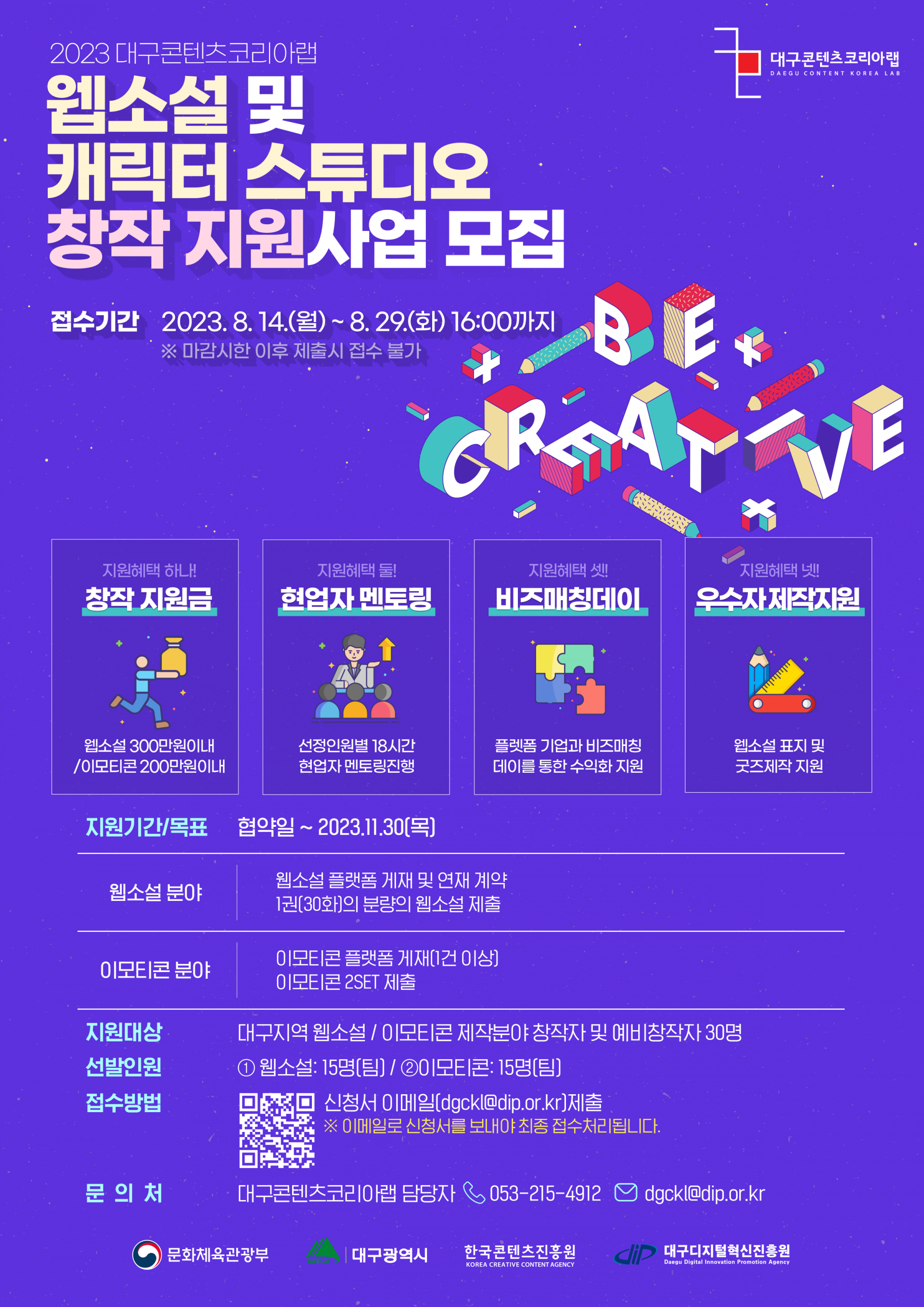 2023 대구콘텐츠코리아랩 웹소설 및 캐릭터 스튜디오 창작 지원사업 모집
